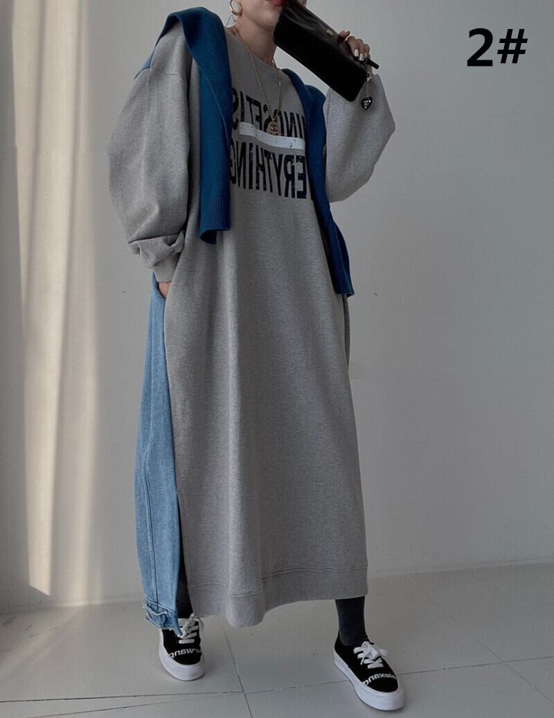 ワンピース ロング丈ワンピース レディース 英字ロゴ ラウンドネック ビッグシルエット